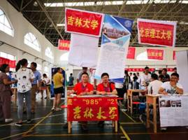 6月27日上午8點開始,招生宣傳小組成員參加了由威海市招生考試辦公室在威海二中召開的招生咨詢會。炎炎烈日下,招生咨詢情況異常火爆,招生咨詢工作一直持續(xù)到12點結(jié)束,幾位老師都嗓子沙啞,皮膚曬傷,但整個宣傳工作下來,激情依舊。吉林大學宣傳冊和招生簡章更是供不應(yīng)求。每個宣傳老師幾乎要同時回答4-5位考生和家長咨詢的問題,大約有300多位考生和家長咨詢吉林大學招生情況。尤其部分家長還針對吉林大學的自主招生、專業(yè)志愿和單獨代碼等招生計劃進行了詳細的詢問。