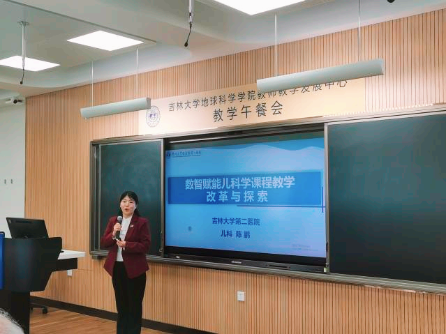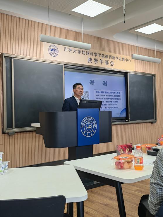 在數(shù)字化轉(zhuǎn)型迅速發(fā)展的當下,數(shù)字技術(shù)正深刻影響教育領(lǐng)域。為充分利用科技與信息資源,積極適應教育變革與創(chuàng)新,更新數(shù)字化時代的教育觀念與教學方法,提高地學部教學質(zhì)量,賦能教師專業(yè)成長,3月11日,地球科學學院教師教學發(fā)展中心聯(lián)合學校教師教學發(fā)展中心開展教學午餐會活動。本次活動邀請吉林大學第二醫(yī)院臨床專業(yè)英語教研室主任、兒科診療中心教授、校“唐敖慶學者”英才教授陳鵬擔任主講嘉賓。地球科學學院院長單玄龍,學校教師教學發(fā)展中心副主任王菲菲,建設(shè)工程學院副院長博坤,第二醫(yī)院教學部主任包洪巖、副主任黃薩,地球科學學院教學委員會主任彭曉蕾,校教育教學督導專家葉松青,新能源與環(huán)境學院教授包國章、馮波及地學部教師代表參加了本次午餐會。會議由地球科學學院副院長錢燁主持。