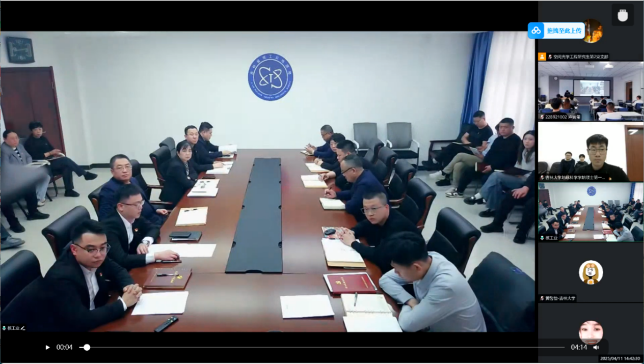 為認(rèn)真貫徹落實黨的二十大精神,進(jìn)一步鞏固學(xué)習(xí)貫徹習(xí)近平新時代中國特色社會主義思想主題教育成果,構(gòu)建結(jié)對幫帶、雙向促進(jìn)、共同提高的基層黨建格局,深化基層黨組織“創(chuàng)先爭優(yōu)”活動,4月11日下午,吉林大學(xué)地球科學(xué)學(xué)院碩士學(xué)生第一黨支部與哈爾濱工業(yè)大學(xué)航天學(xué)院空間光學(xué)工程研究生第二黨支部、吉林省核工業(yè)地質(zhì)局行政、生產(chǎn)黨支部舉行黨建聯(lián)建活動。哈爾濱工業(yè)大學(xué)航天學(xué)院黨委副書記苗成國,學(xué)生黨建辦公室主任韓澤,辦公室副主任魏昕辰、陳佳月和李釗,吉林省核工業(yè)地質(zhì)局黨委書記、局長華巍,副局長彭楊、耿長影、衣鳳軍,黨委辦公室負(fù)責(zé)人張洪霞、楊思雨,行政黨支部書記邵文博,生產(chǎn)黨支部書記柴東,吉林大學(xué)地球科學(xué)學(xué)院黨委副書記吳新明,碩士學(xué)生第一黨支部書記呂勃燃,航天學(xué)院空間光學(xué)工程研究生第二黨支部書記臧云朝出席活動,三方黨員代表參加活動。活動由臧云朝書記主持。