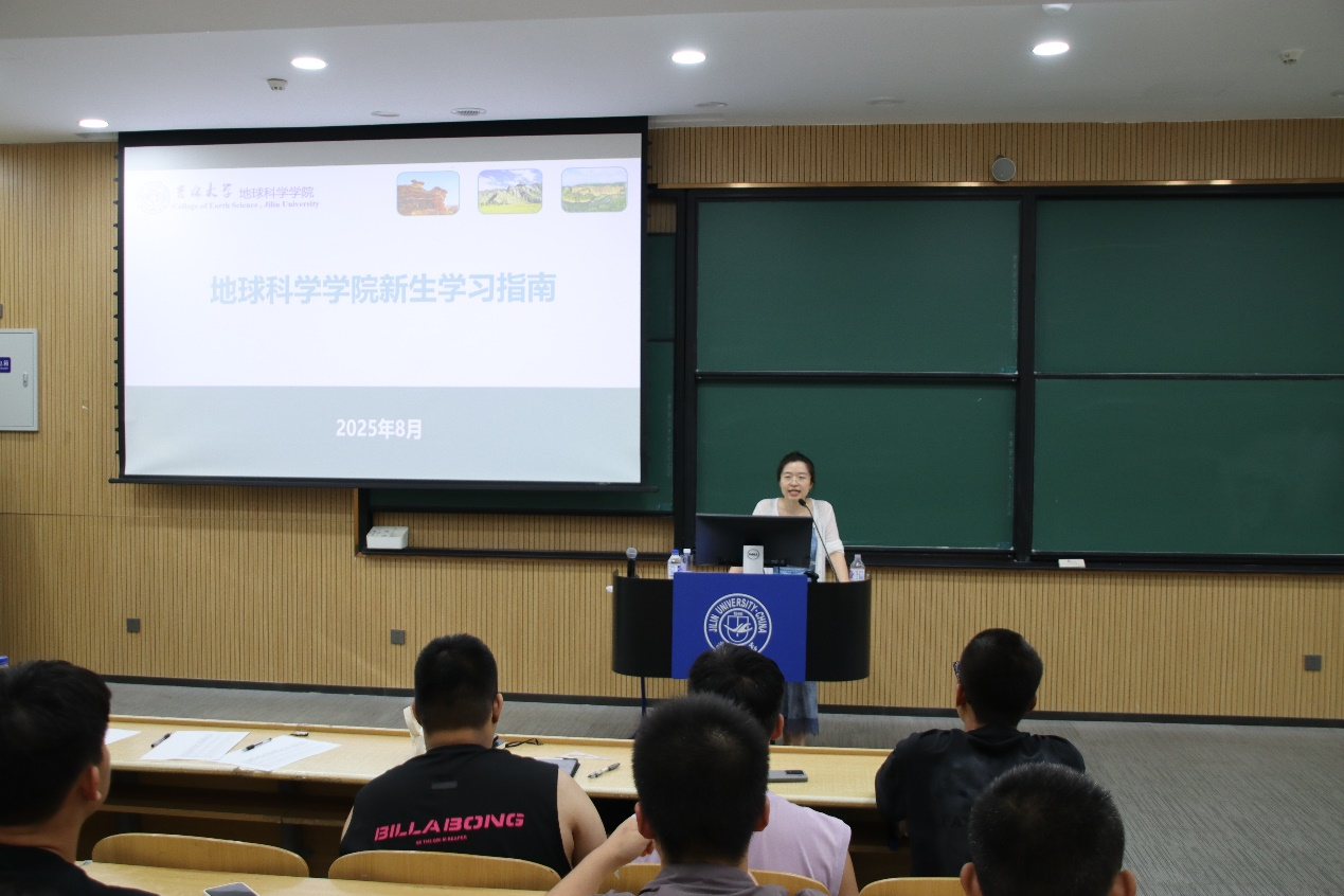 2025年8月26日下午,地球科學(xué)學(xué)院在敬信教學(xué)樓組織召開2025級新生學(xué)業(yè)指導(dǎo)講座。本次講座由學(xué)院教務(wù)辦公室主任常麗麗老師擔(dān)任主講,圍繞教學(xué)管理制度、學(xué)業(yè)發(fā)展規(guī)劃等內(nèi)容為新生作專題輔導(dǎo)。