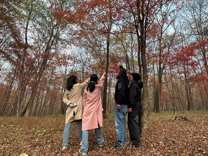 10月14日清晨,滿載著歡聲笑語的大巴車從學(xué)院出發(fā),駛向位于蛟河的紅葉谷。一路上,大家暫時放下了平日繁重的教學(xué)與科研工作,興致勃勃地欣賞著窗外飛馳而過的秋日勝景,聊著家常,