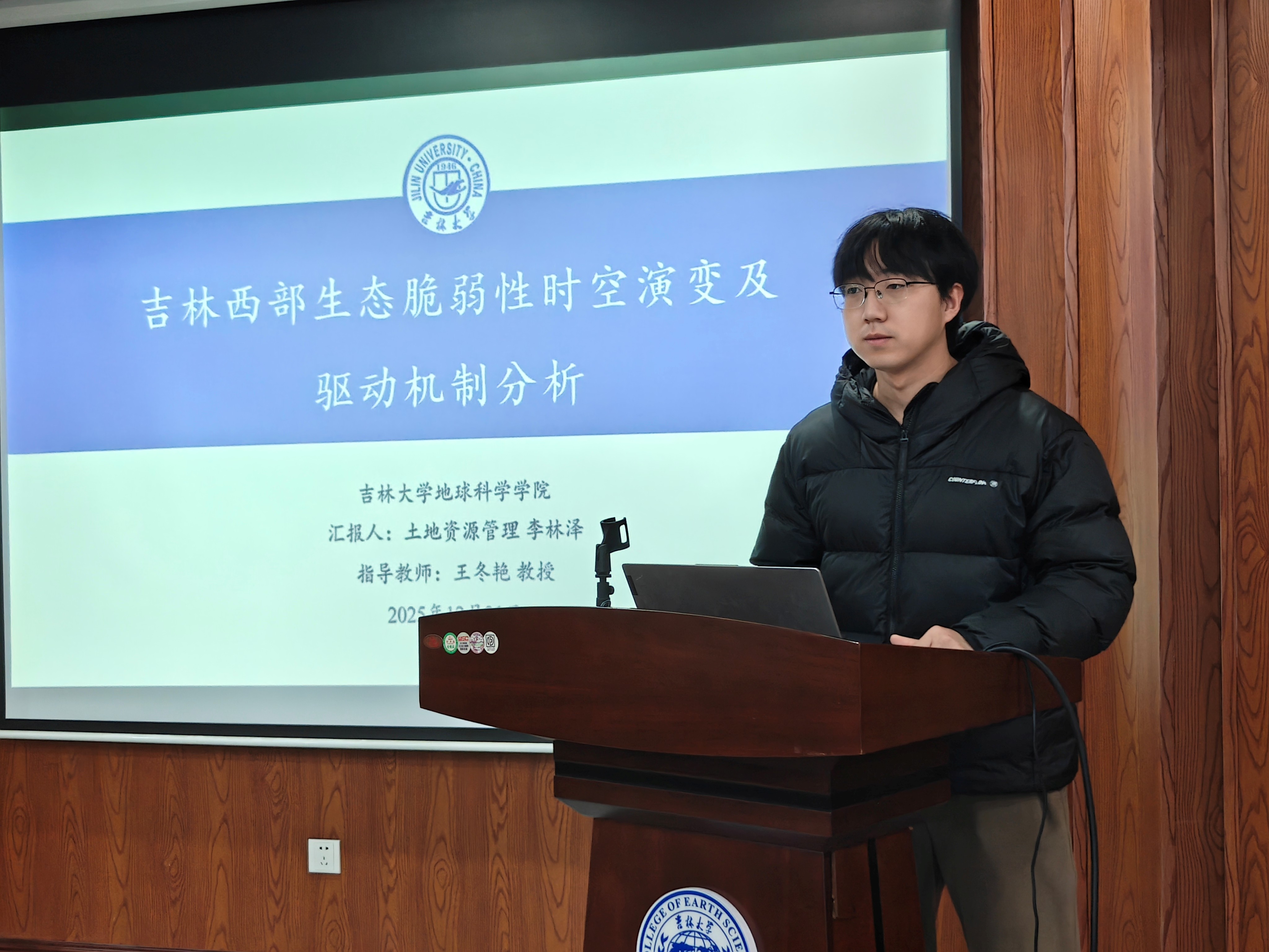 活動上,孫迪以徑流模擬為技術(shù)支撐,探究了松花江中下游水資源適應(yīng)性管理的可行策略;方涵涵借助系統(tǒng)動力學(xué)模型,對長春市城市韌性開展了評價分析與趨勢預(yù)測;張紫燕聚焦長三角地區(qū)城市人居環(huán)境,深入剖析其網(wǎng)絡(luò)架構(gòu)特征及背后的驅(qū)動影響因素;盧仕祺針對寶清縣糧食作物開展專項研究,完成作物識別的同時對其環(huán)境適宜性進(jìn)行了綜合評價;李林澤圍繞吉林西部生態(tài)脆弱性這一核心議題,揭示了其時空演變規(guī)律與內(nèi)在驅(qū)動機制。