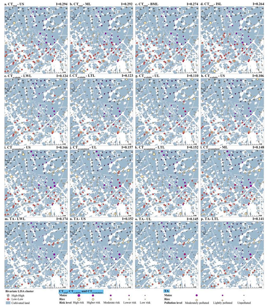 圖3 城郊農(nóng)田重金屬污染評(píng)價(jià)結(jié)果與土地利用的Bivariate LISA聚類(lèi)圖