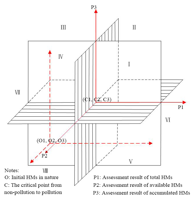圖2 基于突變級(jí)數(shù)理論的農(nóng)田重金屬污染三位一體評(píng)價(jià)方法理念圖