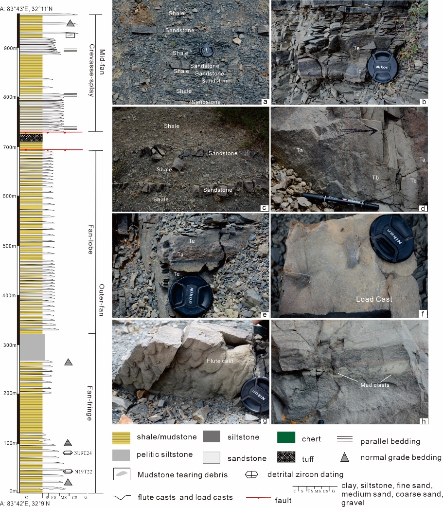 圖1 拉果錯(cuò)早白堊世阿普特期濁積巖柱狀圖及野外照片