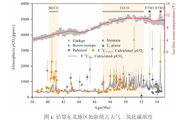 進(jìn)展1—定量恢復(fù)了東北地區(qū)始新世和新疆地區(qū)早侏羅世古大氣CO2濃度