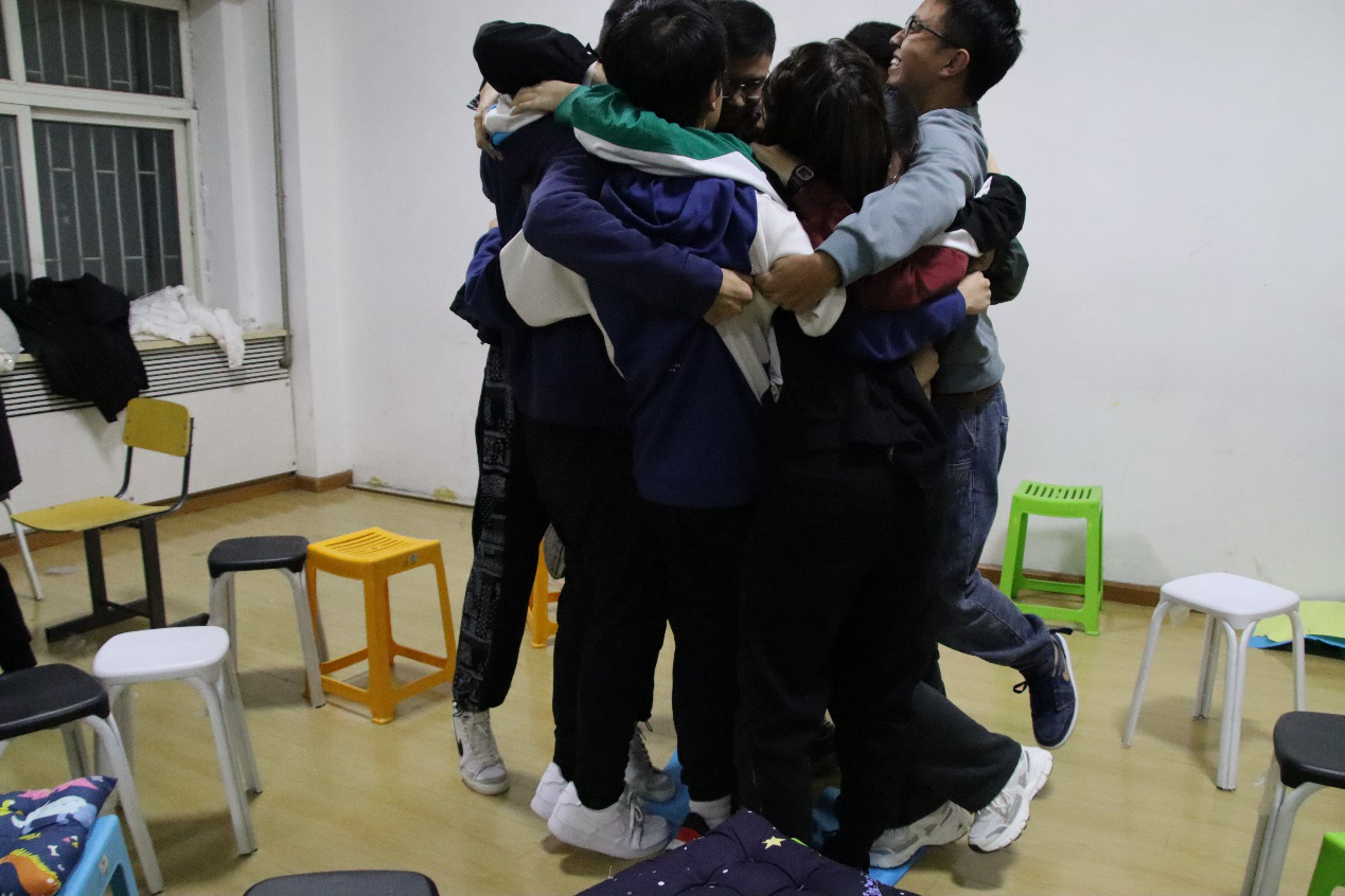 了解階段通過(guò)“一分鐘鼓掌”和“我知道”環(huán)節(jié)。同學(xué)們相互了解,放松身心,參與熱情得到極大提高。團(tuán)結(jié)階段中,同學(xué)們通過(guò)“信任之旅”、“集體登錄”和“人體字母”三個(gè)小游戲,培養(yǎng)了團(tuán)結(jié)意識(shí),搭建了信任橋梁。,在“信任之旅”中,同學(xué)們兩兩一組,共同努力成功避過(guò)各種路障,到達(dá)終點(diǎn)。“集體登陸”中,同學(xué)們以組為單位集思廣益,根據(jù)每個(gè)人的特點(diǎn)合理分工,最終集體“登陸”兩張A4紙,順利完成任務(wù)。