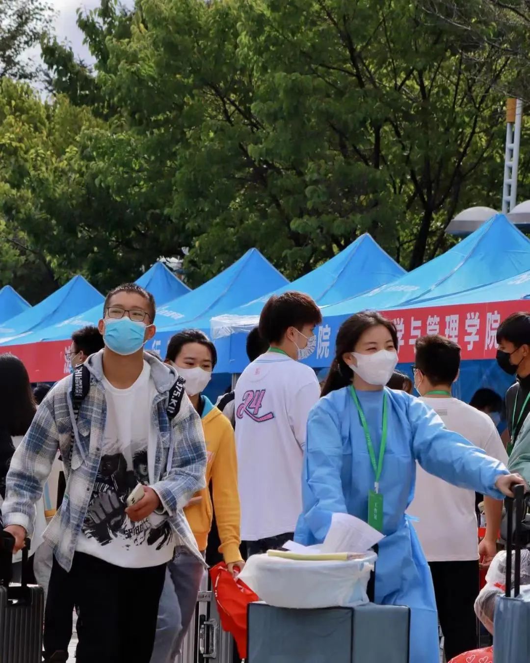 在今年的志愿者中,也有一些“特別的”身影,他們就是我院2022級(jí)的新同學(xué)。這些同學(xué)在辦理好入校手續(xù)后,也積極投身于志愿者隊(duì)伍中,成為迎新志愿者隊(duì)伍中一道亮麗的風(fēng)景。