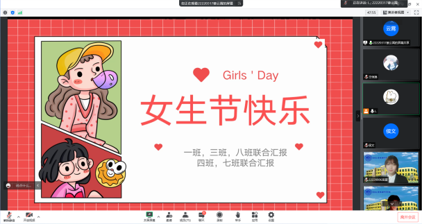 隨著精美PPT的展開,主持人吳星、孫藝瑋用輕松而又不失優(yōu)雅的開場(chǎng)白進(jìn)行暖場(chǎng)并拉開了本次女生節(jié)晚會(huì)的序幕。
