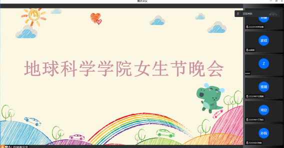 2022年11月27日星期日晚18:00,地球科學(xué)學(xué)院女生節(jié)晚會(huì)順利開展,受疫情影響,本次活動(dòng)轉(zhuǎn)為線上開展。雖然隔著屏幕,同學(xué)們洋溢的熱情依然能將冬日點(diǎn)亮。