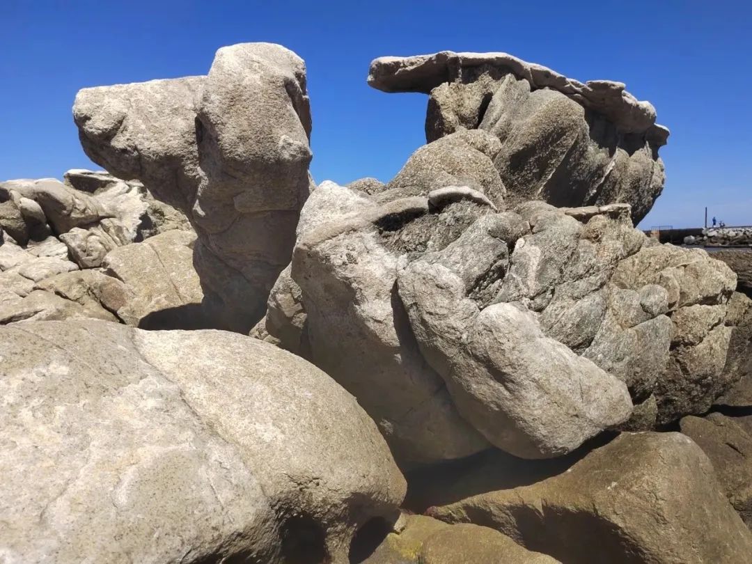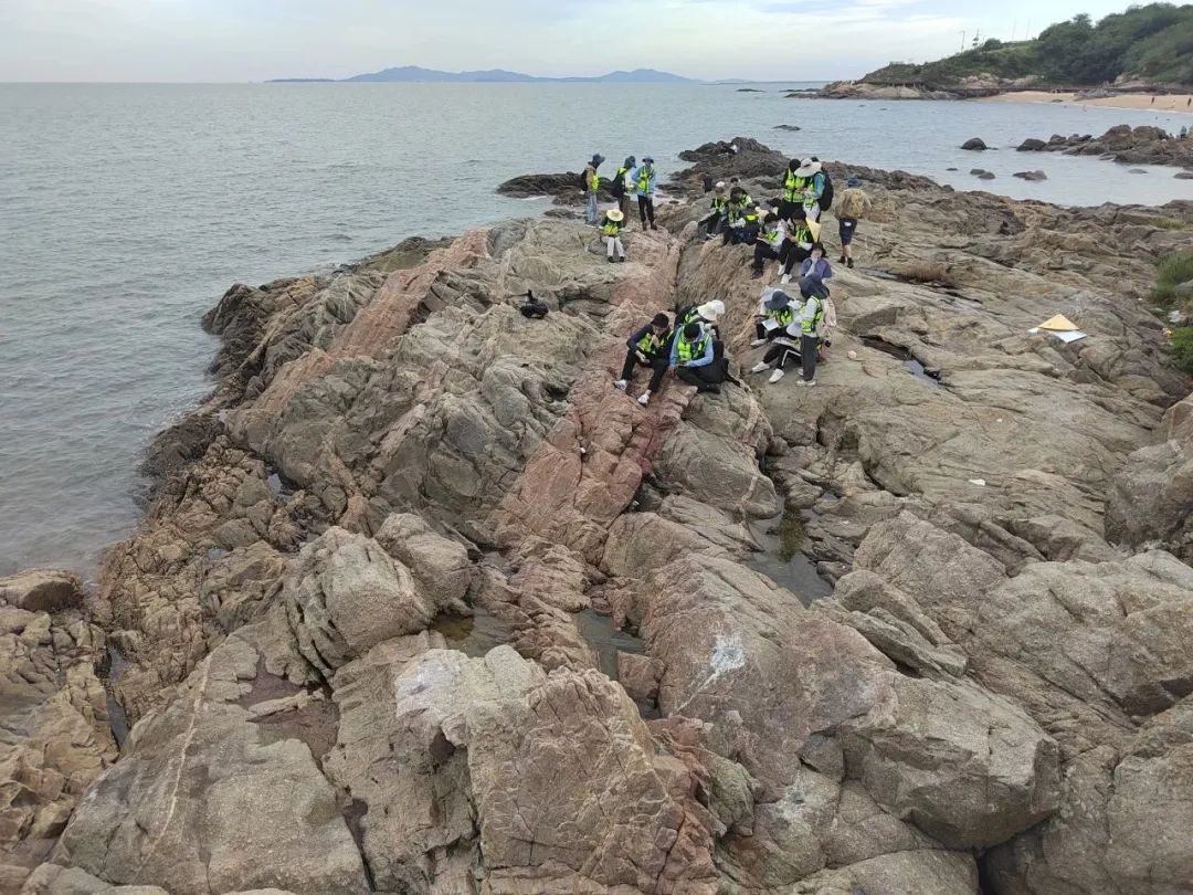 第三日,我們又回到了海邊,這次是釣魚臺(tái)路線,站在釣魚臺(tái)三礁攬勝之地,近看細(xì)粒正長巖、石英閃長巖、花崗偉晶巖與似斑狀二長花崗巖互相穿切,判定巖層新老先后;遠(yuǎn)觀海蝕墩、海蝕崖、海蝕殘丘與波切臺(tái)地交相輝映,展現(xiàn)海蝕地貌特征。站在礁石之上,我們繪制了巖層穿切關(guān)系圖。早早的完成了實(shí)習(xí)任務(wù)后,我們說笑著向著媽祖廟前進(jìn),可惜由于部分因素影響未能進(jìn)入。最后全班同學(xué)與老師背對海洋,拍攝了紀(jì)念照,站在岸上公路旁,俯瞰海洋,不禁感慨實(shí)習(xí)之旅實(shí)在充滿樂趣,也使得同學(xué)們更加期待接下來的幾條調(diào)查路線了。