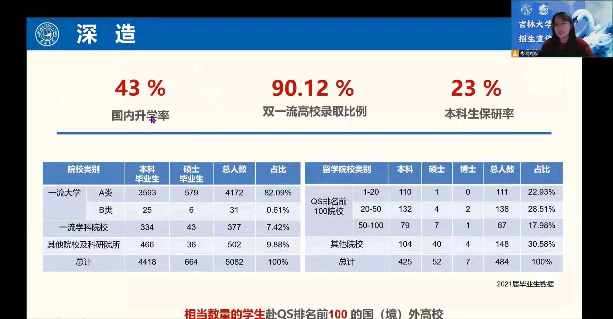 本次線上宣講共吸引100余名樂(lè)陵一中高二同學(xué)以及家長(zhǎng)踴躍參與,宣講主要圍繞著吉林大學(xué)的強(qiáng)勁實(shí)力、深厚底蘊(yùn)、杰出人才、卓越專(zhuān)業(yè)、人才培養(yǎng)的巨大優(yōu)勢(shì)、基礎(chǔ)學(xué)科的拔尖培養(yǎng)計(jì)劃、“強(qiáng)基計(jì)劃”、全球唯一一個(gè)古文字學(xué)、綜合開(kāi)放創(chuàng)新的人才培養(yǎng)環(huán)境、開(kāi)放包容的轉(zhuǎn)專(zhuān)業(yè)環(huán)境、國(guó)際交流與合作的平臺(tái)優(yōu)勢(shì)、吉林大學(xué)學(xué)子未來(lái)深造和就業(yè)的美好前景,吉林大學(xué)學(xué)習(xí)生活的優(yōu)美環(huán)境,學(xué)習(xí)的優(yōu)渥條件,豐富美味的食堂,方便安全的出行,設(shè)施完備的娛樂(lè)活動(dòng)和豐富有趣的校園活動(dòng)等方面展開(kāi)介紹。