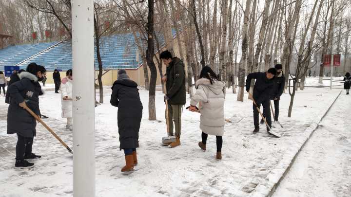 最后,掃雪任務(wù)圓滿完成,操場(chǎng)上變得干凈整潔。大家不懼嚴(yán)寒,認(rèn)真完成工作,在這寒冷的天氣下展現(xiàn)出了屬于2018級(jí)地科同學(xué)的團(tuán)結(jié)和力量,同學(xué)們用勞動(dòng)的熱情,和這場(chǎng)大雪一起,見(jiàn)證著吉大的又一個(gè)冬天,而這個(gè)冬天,也見(jiàn)證著屬于各位大一同學(xué)們的又一次成長(zhǎng)。