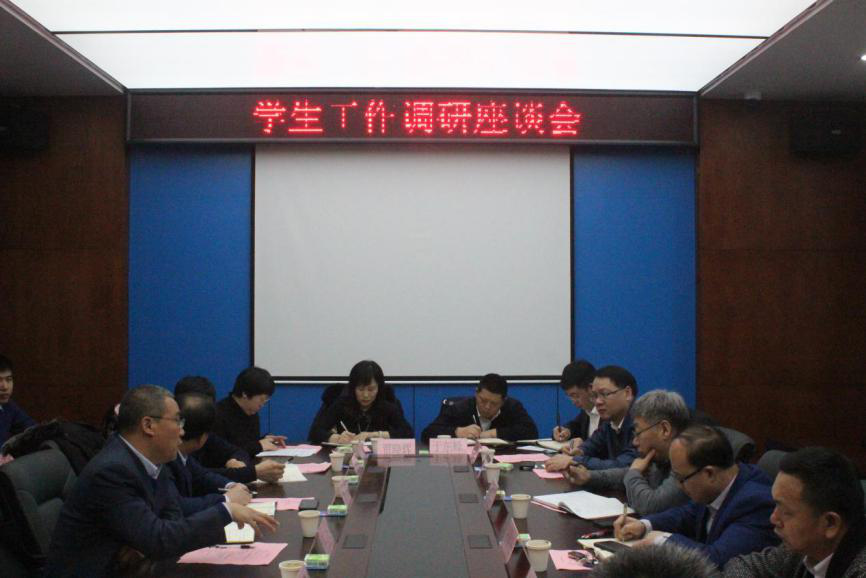 2018年12月20日下午,校黨委副書記馮正玉,校黨委辦公室、學生工作部、研究生工作部、教務處、校團委、學生就業(yè)創(chuàng)業(yè)指導與服務中心、保衛(wèi)處、學生心理健康指導中心等單位相關負責同志一行來到我院,開展學生工作專題調研。我院黨委書記楊洲,院長任云生,黨委副書記劉曉鵬以及學生工作辦公室、研究生辦公室的工作人員和學生代表參與了此次調研。