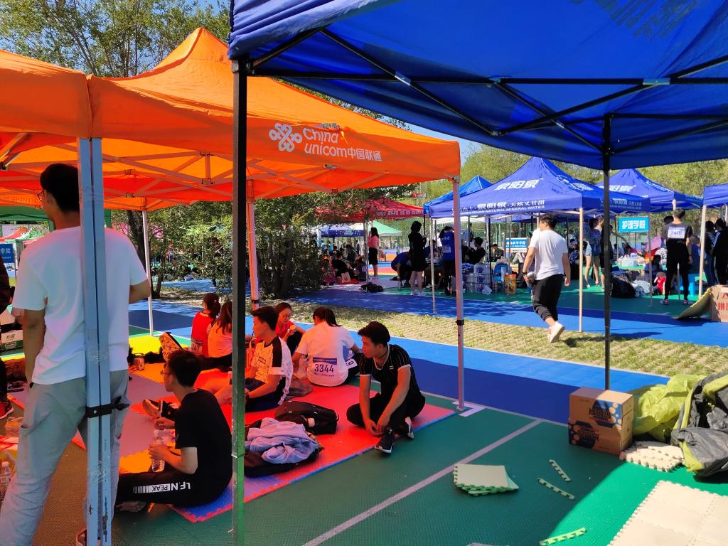 一大早,有項目的學(xué)生便來到學(xué)院在操場的搭建的棚子里,他們有的安排場地,有的整理服裝,有的熱身運動。原本安詳靜謐的籃球場一瞬間就變得熱鬧非凡。
