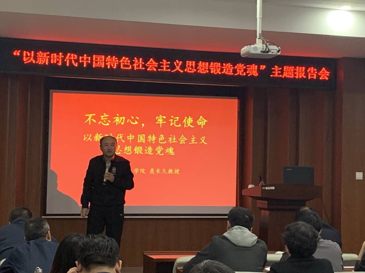 聶老師的報告首先回顧了中國共產(chǎn)黨的歷史,講解了中國共產(chǎn)黨初心使命的形成、發(fā)展、內(nèi)涵與時代意義,分析了習(xí)近平新時代中國特色社會主義思想在保持初心、踐行使命、鍛造黨魂中的意義和作用。最后結(jié)合中國共產(chǎn)黨的歷史發(fā)展進(jìn)程提出如何保持黨員的先進(jìn)性和純潔性。不忘初心、牢記使命,便是堅守黨魂;便是堅定信念,勇往直前;便是即使前路崎嶇,還是毅然而行;便是即使困難重重,也不動搖意志;便是自始至終的堅持,便是持之以恒的努力。