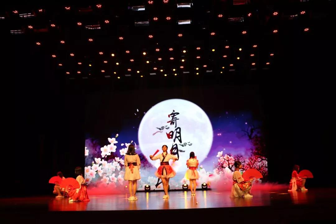 紅色的折扇,鮮艷的服裝,我們看到的是由谷靜雯、袁巧巧等同學(xué)帶來的舞蹈《寄明月》。經(jīng)過一次又一次的努力排練,同學(xué)們的舞蹈非常精彩,每一個(gè)動(dòng)作都展現(xiàn)了古典美人的韻味。