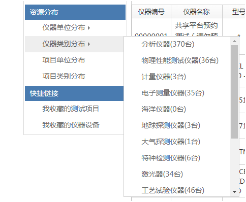 (2)按照儀器類(lèi)別分布進(jìn)行查找