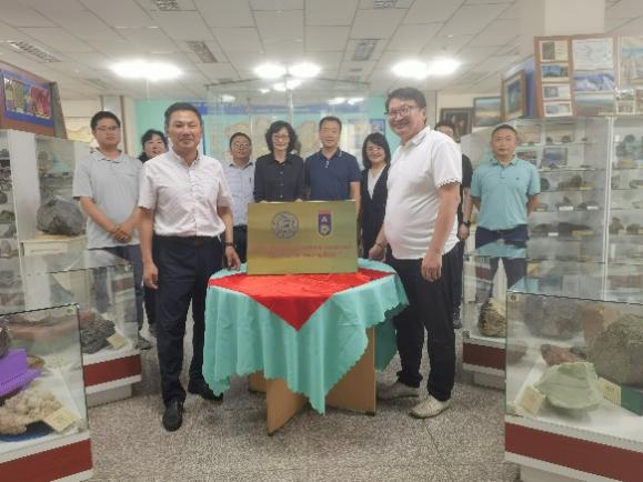 會(huì)談結(jié)束后,地球科學(xué)學(xué)院院長(zhǎng)單玄龍和蒙古科技大學(xué)地質(zhì)與采礦工程學(xué)院院長(zhǎng)哈瓦爾·博洛特在蒙古科技大學(xué)地質(zhì)博物館共同為中蒙國(guó)際地學(xué)野外實(shí)踐教學(xué)基地揭牌。代表團(tuán)參觀了蒙古科技大學(xué)地質(zhì)博物館。