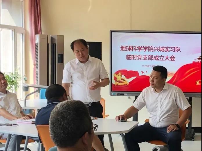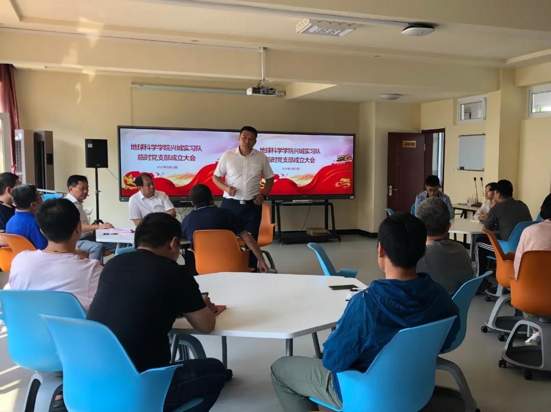 8月23日上午9點(diǎn)30分,地球科學(xué)學(xué)院地學(xué)基礎(chǔ)教學(xué)實(shí)習(xí)隊(duì)臨時(shí)黨支部成立大會(huì)在興城教學(xué)基地研討室召開,學(xué)院黨委書記楊洲、院長單玄龍等同志出席會(huì)議,參加此次教學(xué)實(shí)習(xí)的全體教師黨員參加了會(huì)議。